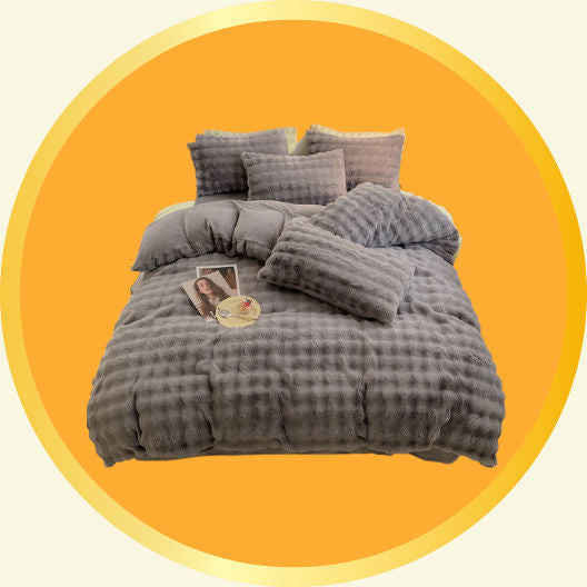 Colorful Gradient Textured Bubble Faux Rabbit Fur Soft Bed Sheet Set