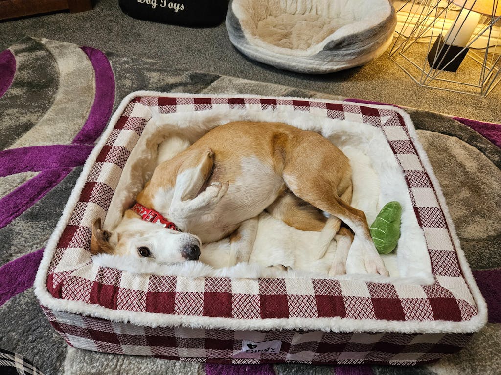 A cosy dog bed although it does tend to squash down a lot in the middle.