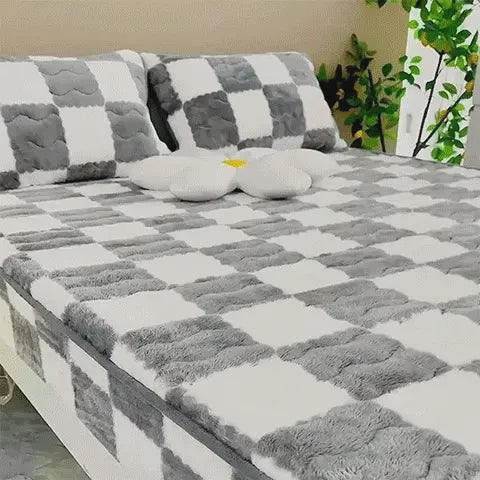Milchsamt-Matratzenbezug mit kariertem Muster