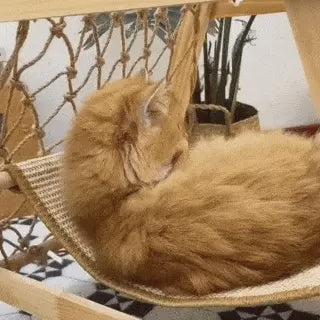 The lower hammock is made of tightly woven jute, creating a cozy, secure spot where your cat can relax and unwind after a fun-filled day of play.