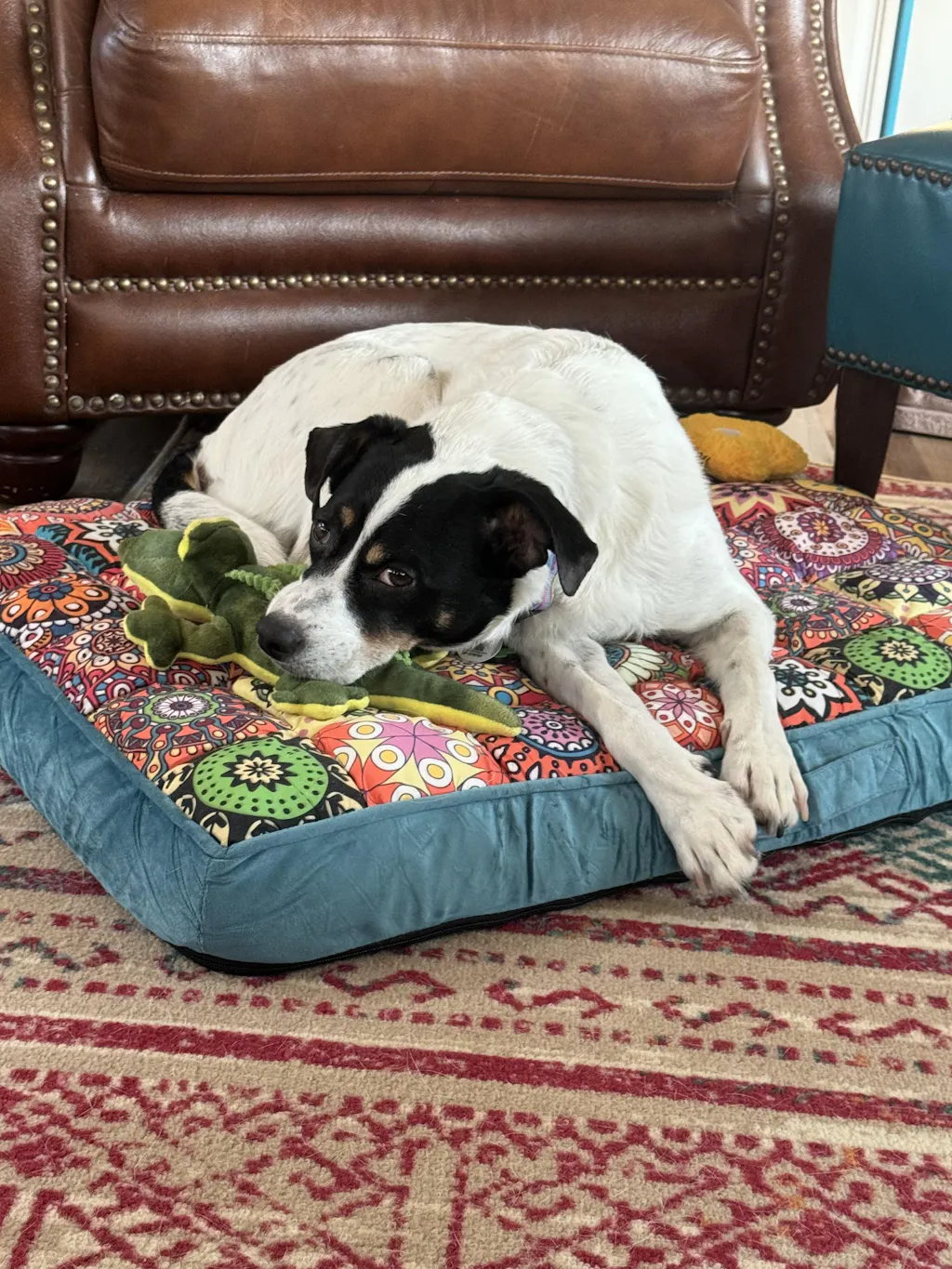 Verwöhnen Sie Ihren pelzigen Freund mit dem bequemen, dicken und orthopädischen Hundebett mit Vollunterstützung aus Marokko. Inspiriert von der reichen Ästhetik marokkanischer Kunst bietet dieses Bett lebendige geometrische und florale Muster, die nicht nur einen luxuriösen Ruheplatz bieten, sondern auch eine auffällige Ergänzung Ihrer Inneneinrichtung darstellen.