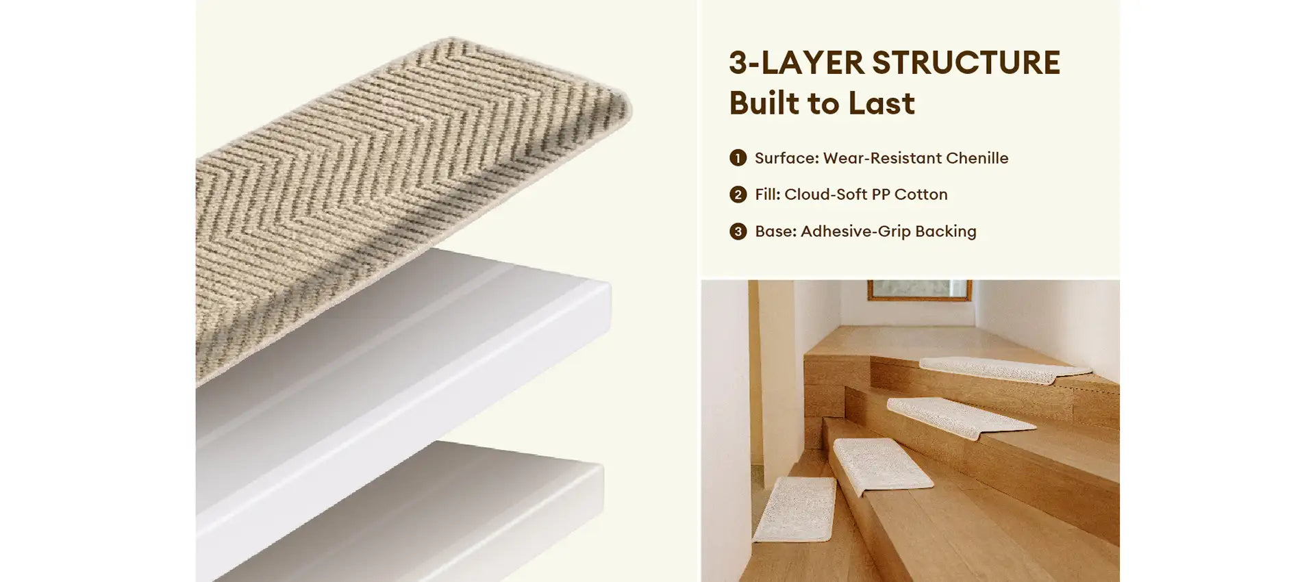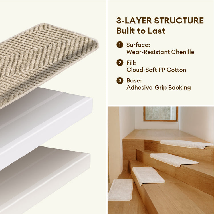 - Elegant Herringbone Texture: The minimalist yet stylish herringbone pattern elevates your stair aesthetic without overpowering your decor — available in versatile neutrals that match any interior palette.