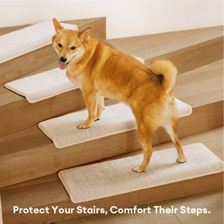 - Gentle on paws, Easy on Joints: Crafted with a soft, textured surface and a cushioning layer, these stair mats offer shock-absorbing comfort that supports aging pets and reduces impact on joints — especially for corgis, dachshunds, and senior dogs.