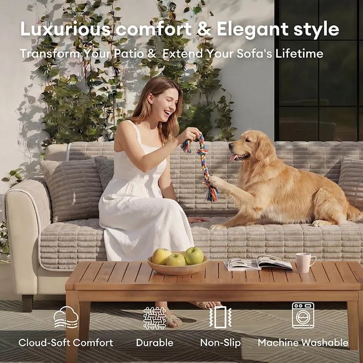 One-Piece Cozy Flannel Sofa Protection Non-Slip Outdoor Couch Cover