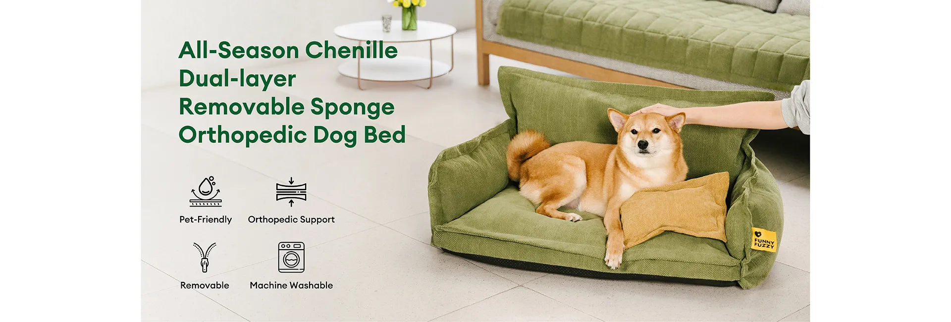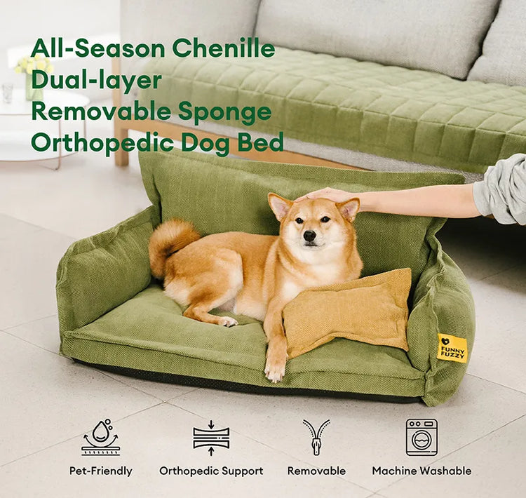 Designed for year-round use, the All-Season Chenille Orthopedic Dog Bed with Pillow blends plush softness, breathable chenille, and joint-friendly support. Its dual-layer cushioning and cozy bolsters create a warm, secure haven in winter and a breathable, relaxing retreat in summer.