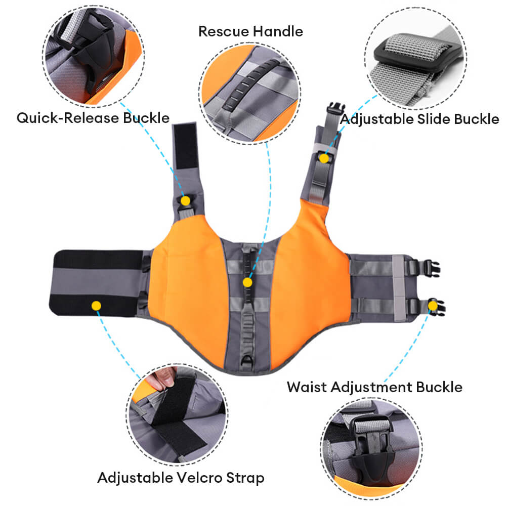 - Material duradero y flotante: Construido con espuma flotante de alta calidad y tela transpirable para mantener a tu perro a flote.