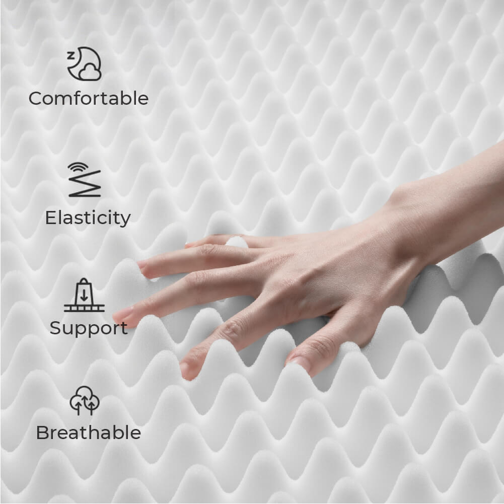- Protección impermeable con revestimiento interior de TPU: Los accidentes ocurren, pero limpiarlos no tiene por qué ser complicado. La membrana interior impermeable de TPU protege la espuma viscoelástica de la humedad, la baba y la suciedad.