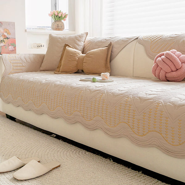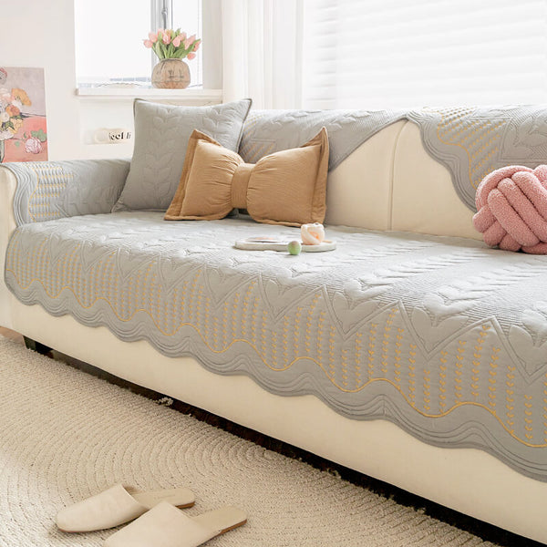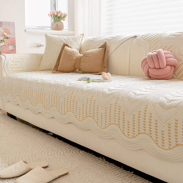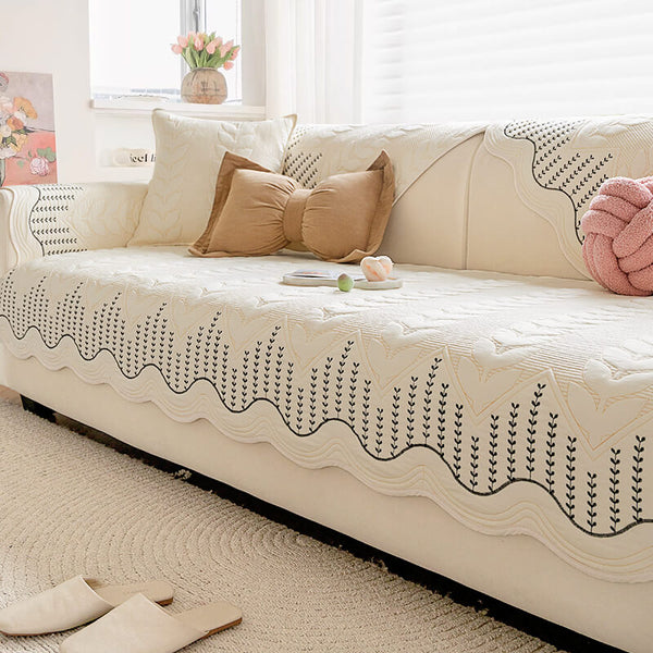 Pet-Friendly Chenille Textured Non-Slip Couch Cover with Frayed Edges