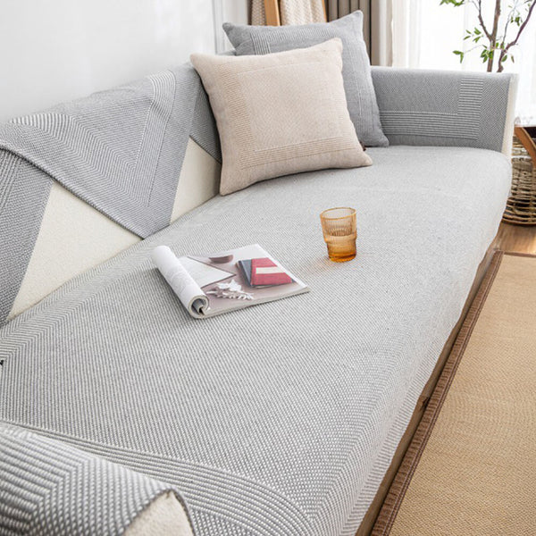 Faux Cotton-Linen Chenille Striped Breathable Scratch-Resistant Couch Cover