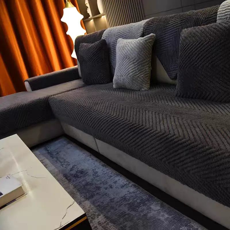Housse de canapé antidérapante à chevrons en peluche épaisse