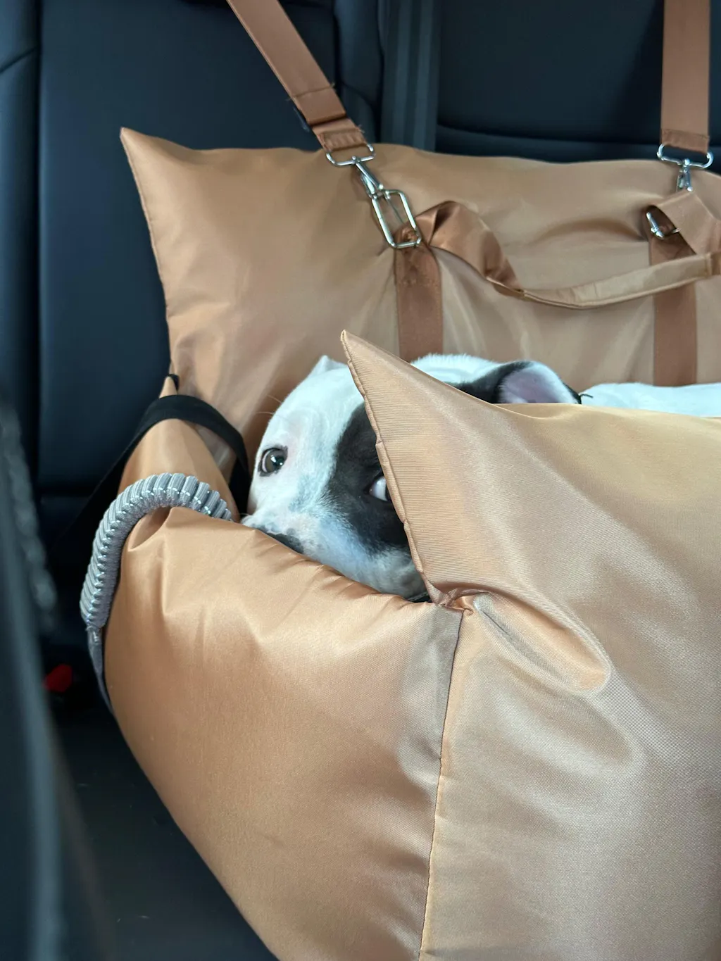 My dog loves her new car seat, nicely padded and I love the new denim blue colour
