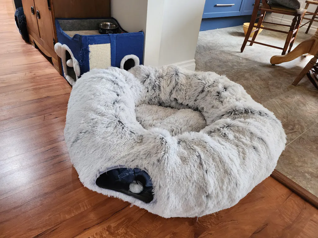Are you looking for the purr-fect way to keep your furry little friend cozy and comfortable? Look no further, because this 2 in 1 Foldable Indoor Soft Round Cat Tunnel Bed is just what your cat needs!