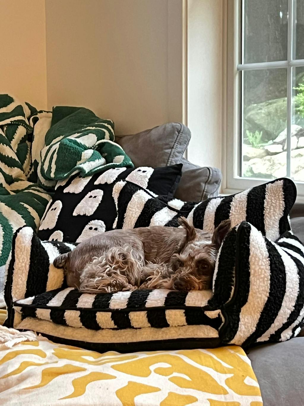 Trendy Striped Faux Lambswool Double Layer Dog & Cat Sofa Bed