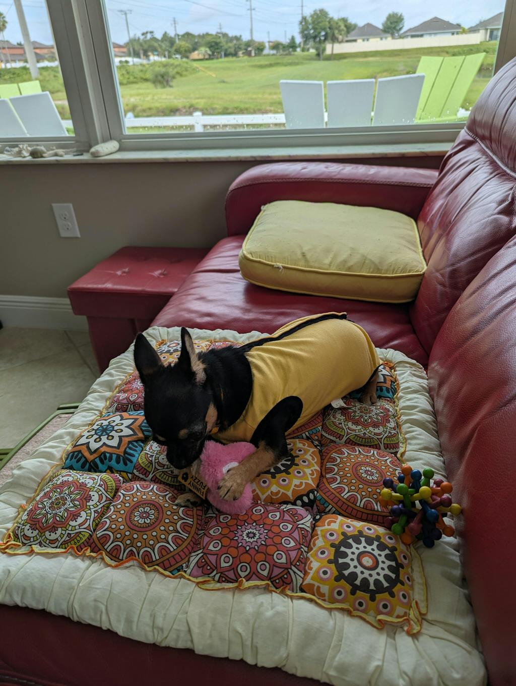 Do you need a mat that is both comfortable and beautiful for you and your pet? This chenille mat could provide a comfortable place for you to play together.