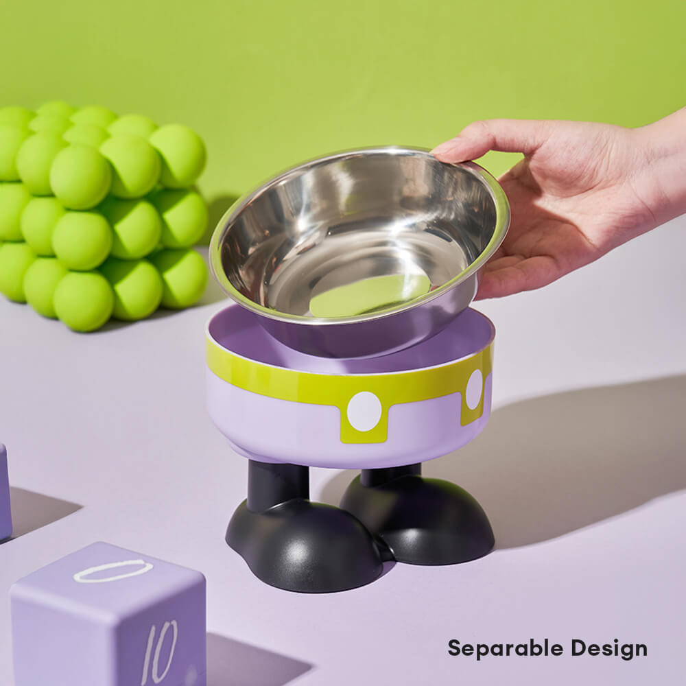 - Adorably Playful Overalls Design: Inspired by cartoon-style overalls with little feet, the bowl’s outer shell brings a smile to any pet corner. Available in vibrant colors like red, purple, and cream yellow, it's as fun as it is functional—perfect for playful homes and pets.