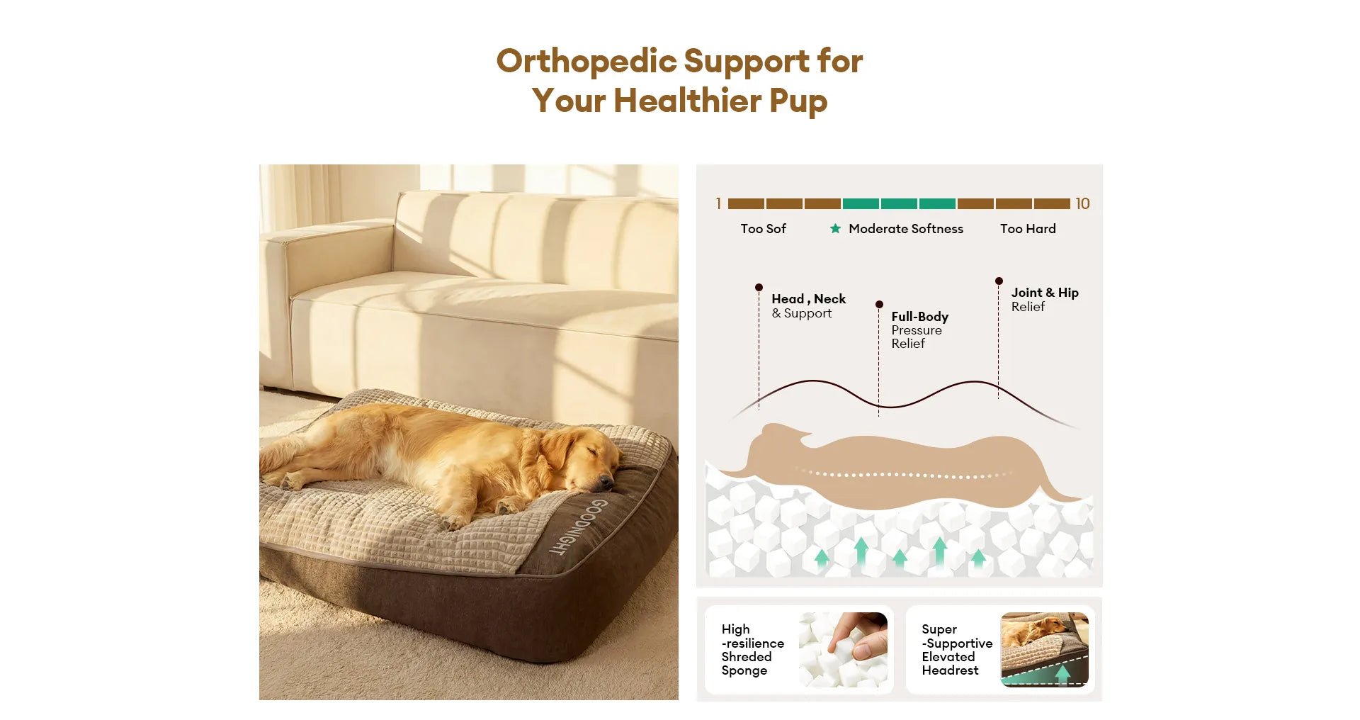 • Orthopedic Support for Joint Health: Filled with high-resilience shreded sponge padding, it contours to your dog’s body, easing pressure on joints, hips, and spine, making it an ideal choice for senior and large dogs.
