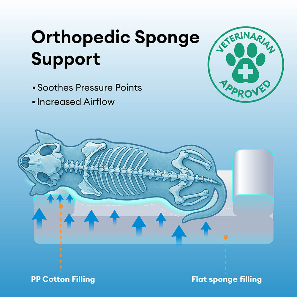 Orthopedic Support: High-density sponge cushioning and raised bolsters provide joint-friendly support, ideal for senior dogs or those with mobility concerns.