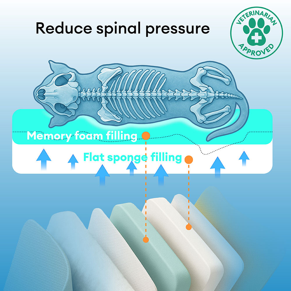 Dual-Layer Orthopedic Support: Combining a high-resilience foam base with a plush memory foam topper, this mat provides firm yet cushioned support, promoting healthy spine and joint alignment for dogs of all ages.