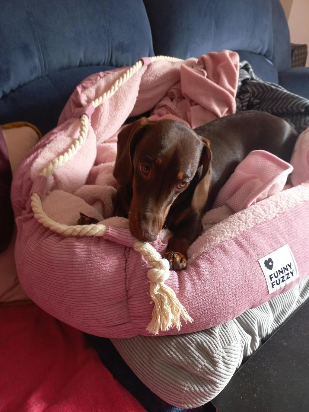 A fun pet bed specially designed for teething puppies! In order to prolong the service life of the bed, a biting-resistant hemp rope is added, which can be adjusted while diverting the dog's attention from destroying the bed.