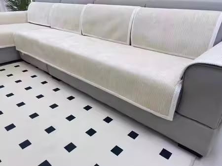 - Certainly! The couch cover features a non-slip bottom that helps keep it in place. Additionally, we provide foam inserts that tuck into the sides of your couch cushions for added security. These design details ensure that the cover stays fitted, maintaining a sleek and tidy appearance.