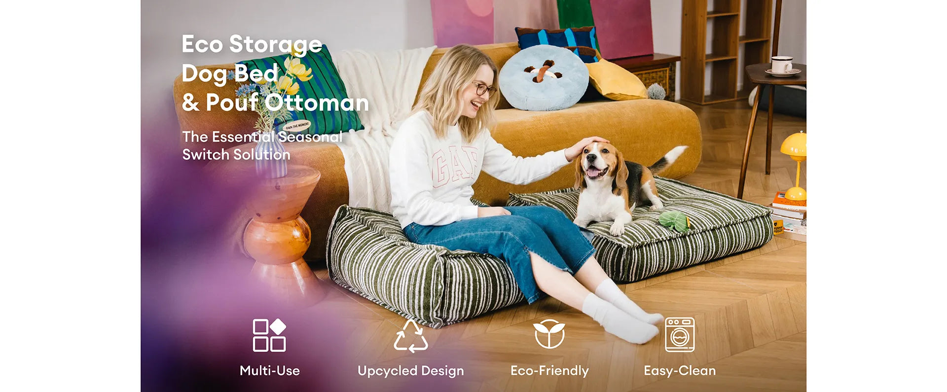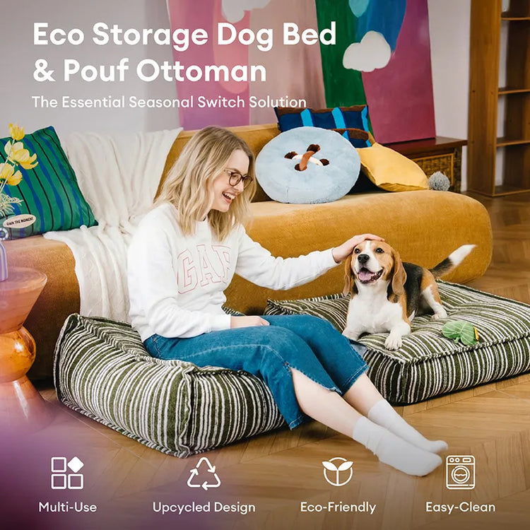 Ready for next-level pet comfort? The FunnyfuzzySnugNest Sustainable Storage Pouf Ottoman & Dog Bed pairs eco-conscious design with versatile functionality your furry friend will love. Whether they're curling up for a cozy nap or you're putting your feet up after a long day, this 2-in-1 piece delivers sustainable comfort and effortless style for every season. With easy-clean convenience and thoughtful details, it's the multi-tasking marvel your home truly deserves.