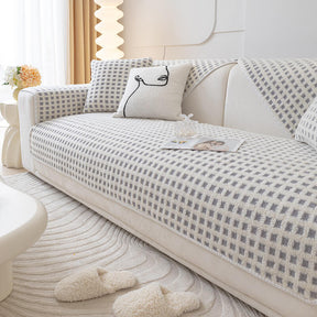 Warm Sherpa Fleece Plaid Furniture Protector Couch Cover