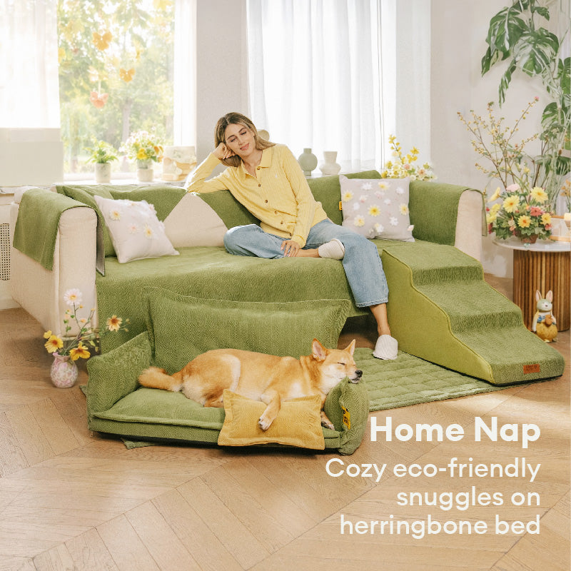 Our star herringbone chenille fabric features a grass-like soft texture—gentle on your pup’s paws and cozy for every snuggle.