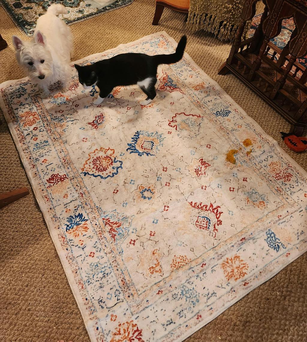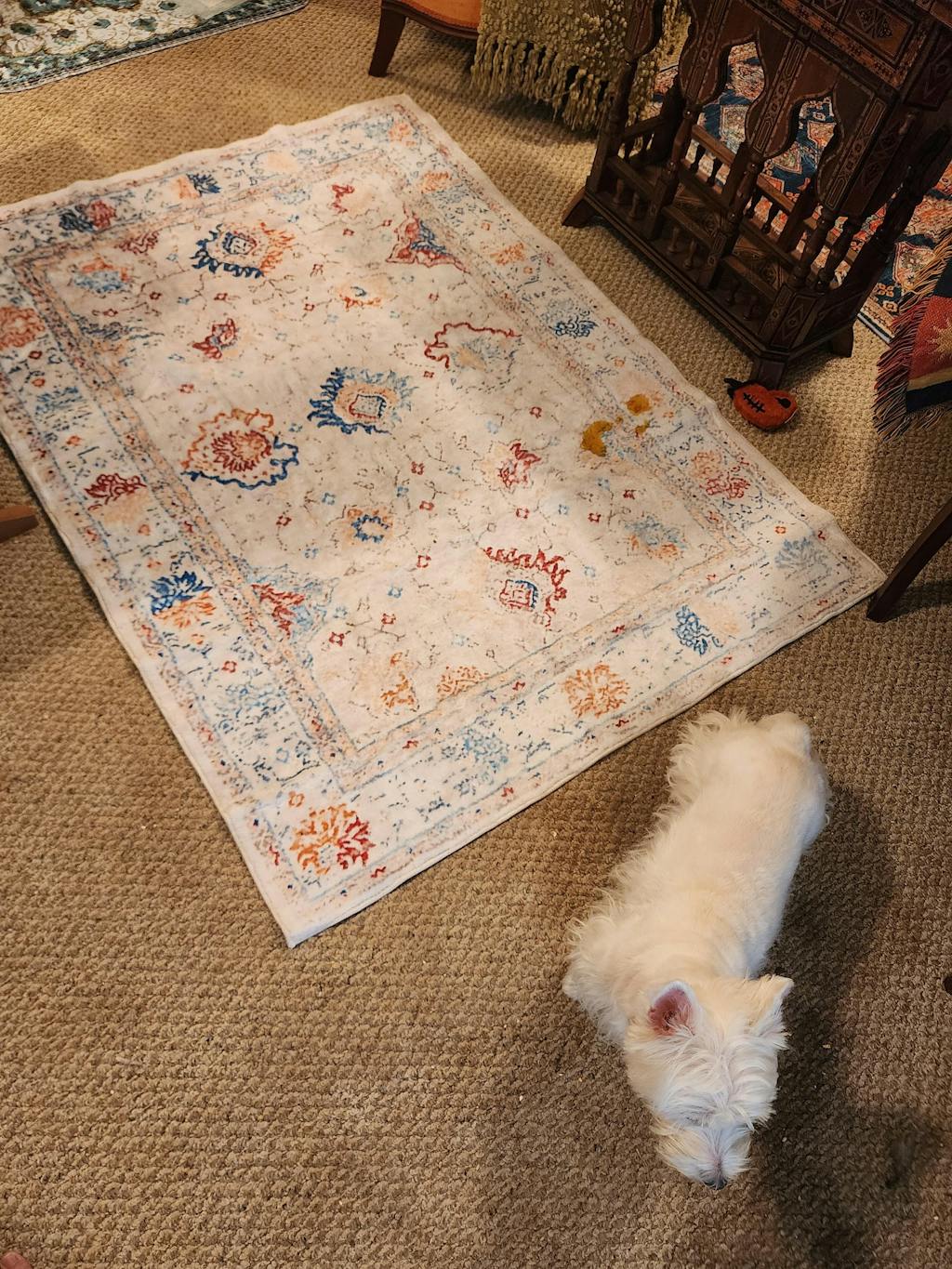 Add a touch of timeless elegance to your home with our Vintage Blue & Cream Pet-Friendly Area Rug. This beautifully crafted rug features an intricate design inspired by classic Persian motifs, making it a stunning focal point for any room. The blend of rich blue and soft cream tones creates a sophisticated look that complements a wide range of interior styles.Designed with pet owners in mind, this rug is made from durable, stain-resistant materials that stand up to everyday wear and tear. Its low-pile construction makes it easy to clean and maintain, ensuring it stays looking fresh even in high-traffic areas. Whether placed in the living room, bedroom, or under a dining table, this rug provides a cozy and stylish surface that both you and your pets will love.